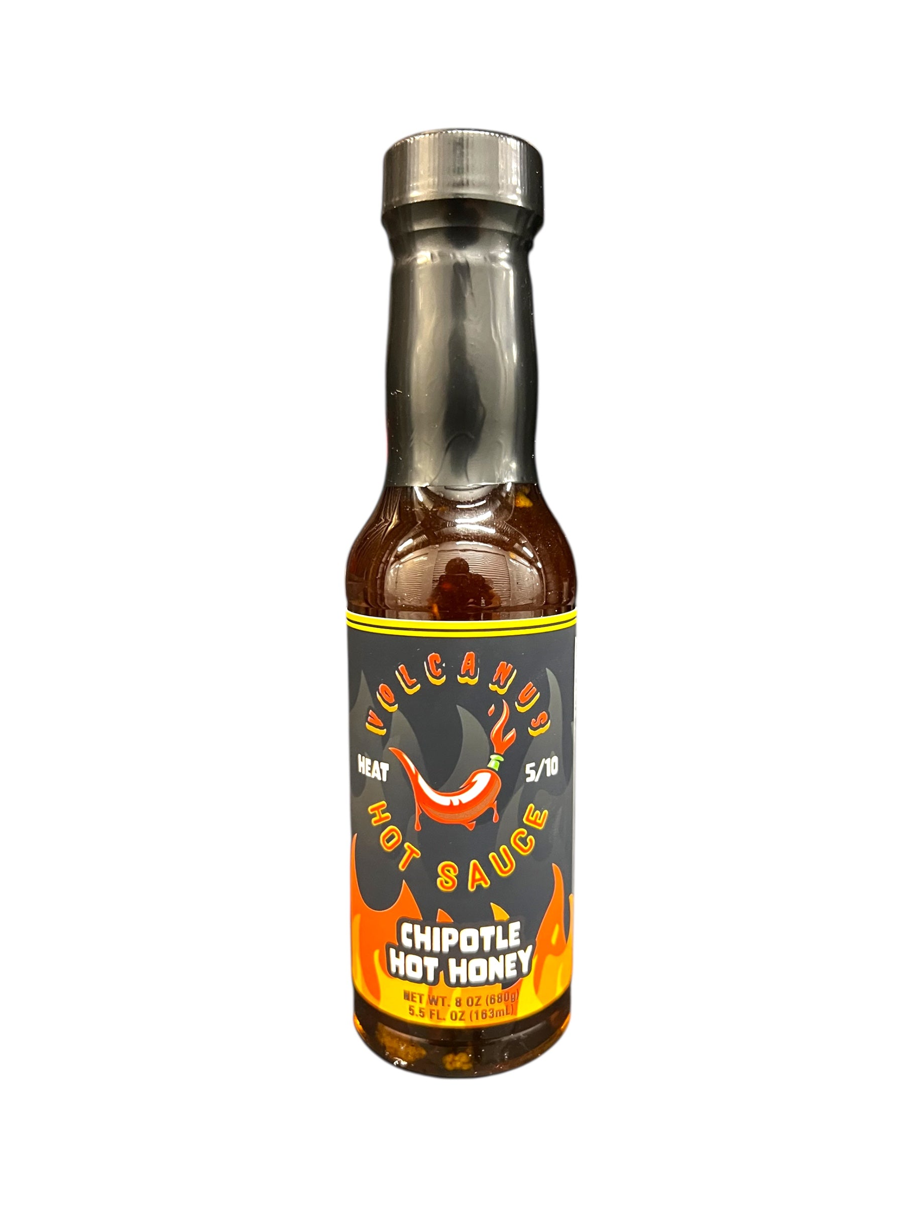 Experience the perfect balance of smoky flavor and heat with our Volcanus chipotle hot honey. Drizzle it over ice cream, fruits, or pancakes to elevate your taste buds. Made with all natural ingredients and real honey!